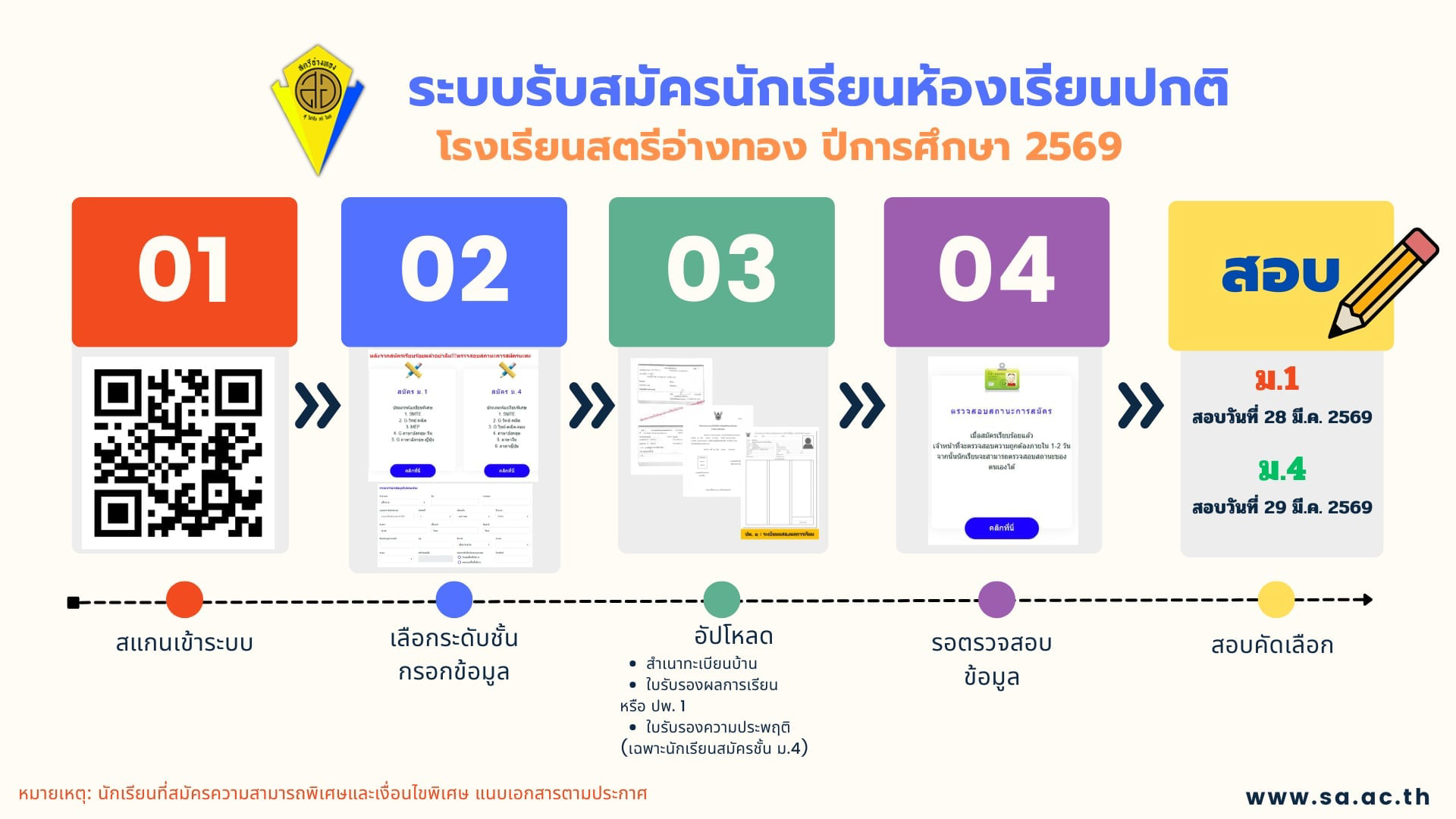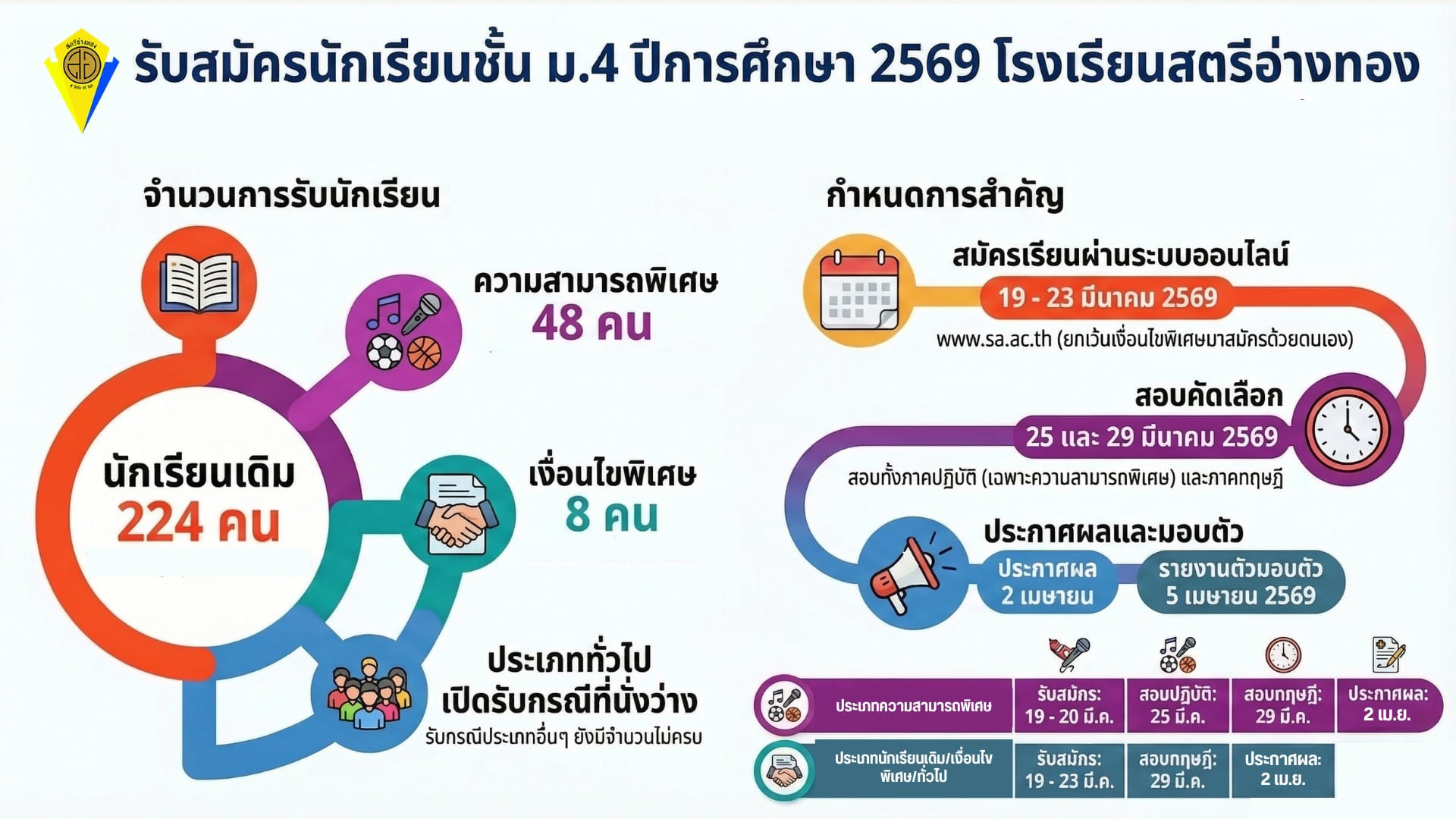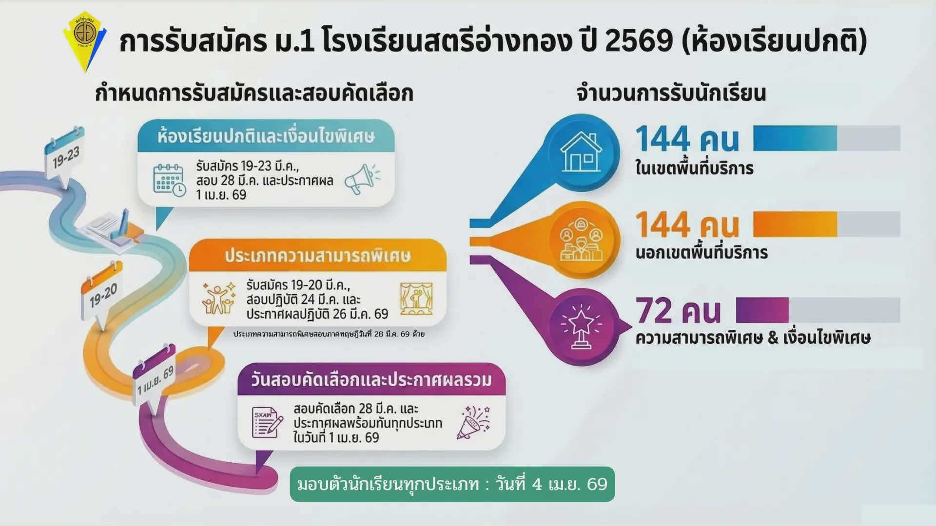 โรงเรียนสตรีอ่างทอง เป็นโรงเรียนมัธยมศึกษาประเภทสหศึกษา สังกัดสำนักงานคณะกรรมการการศึกษาขั้นพื้นฐาน กระทรวงศึกษาธิการ เดิมรวมอยู่กับโรงเรียนอ่างทองปัทมโรจน์ราษฎร์บำรุงหรือโรงเรียนประจำจังหวัดอ่างทอง (ปัจจุบันคือโรงเรียนอ่างทองปัทมโรจน์วิทยาคม) อยู่ในบริเวณวัดอ่างทอง ต่อมาปี พ.ศ. 2482 ได้รับงบประมาณการก่อสร้างอาคารเรียนแบบอาคารไม้สองชั้นขนาด 8 X 22 เมตร 6 ห้องเรียน สร้าง ณ บริเวณหน้าศาลากลางจังหวัด (เป็นที่ตั้งขององค์การบริหารส่วนจังหวัดอ่างทองเดิม) และได้แยกเฉพาะ นักเรียนหญิงมาเรียนในอาคารใหม่โดยใช้ชื่อว่า“โรงเรียนสตรีประจำจังหวัดอ่างทอง”เปิดสอนเฉพาะระดับมัธยมศึกษาตอนต้น มีนางพงศ์ทอง ดีแท้ เป็นผู้บริหารคนแรกของโรงเรียน