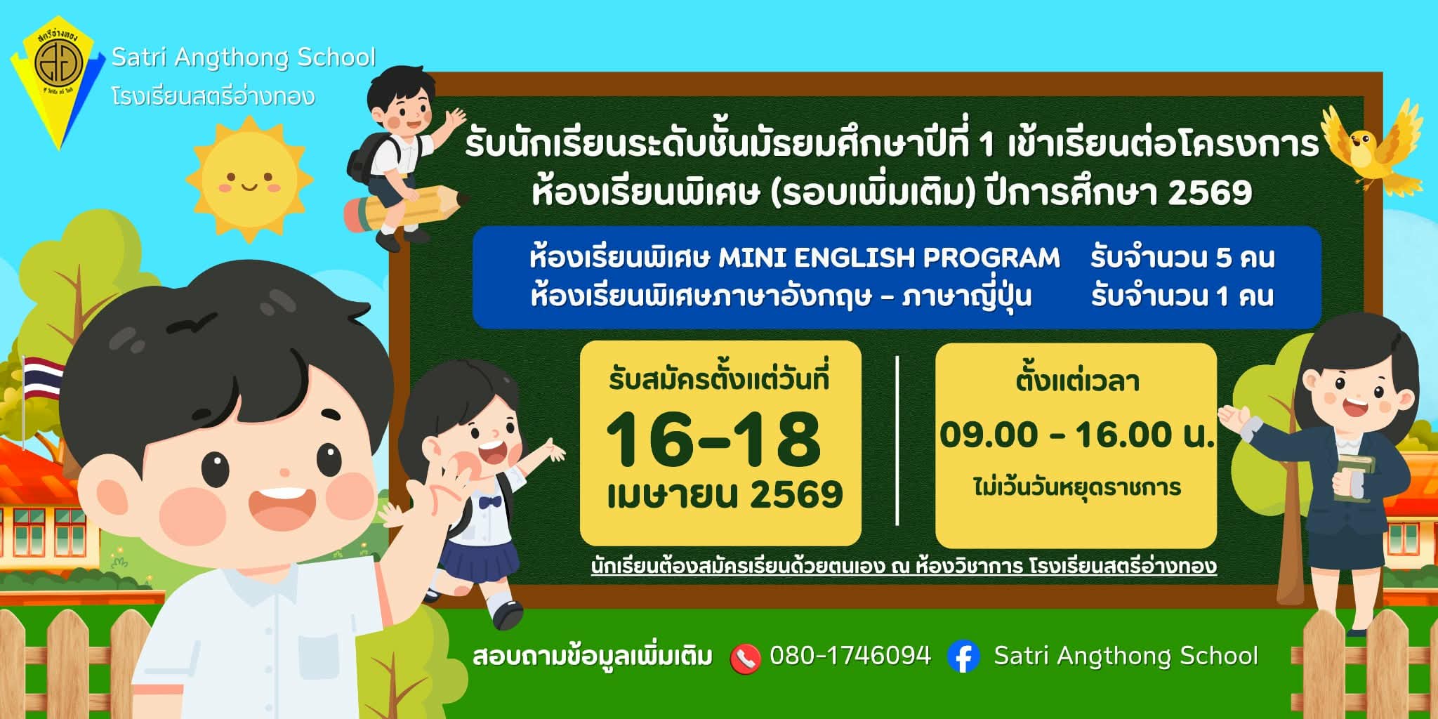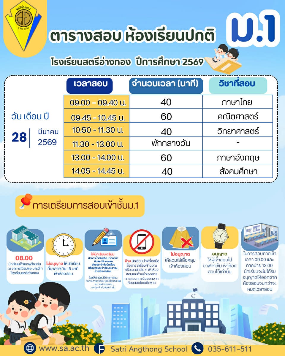 ประกาศโรงเรียนสตรีอ่างทอง เรื่อง การรับนักเรียนเข้าเรียนต่อขั้นมัธยมมศึกษาปีที่ ๑ ปีการศึกษา ๒๕๖๙ (โครงการห้องเรียนพิเศษ) รอบเพิ่มเติม